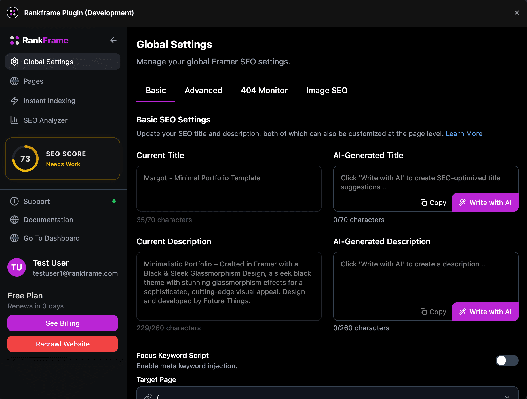 Nope. If you can publish a site on Framer, you can optimize it with RankFrame. Everything’s built to be visual, intuitive, and beginner-friendly, No SEO background needed.